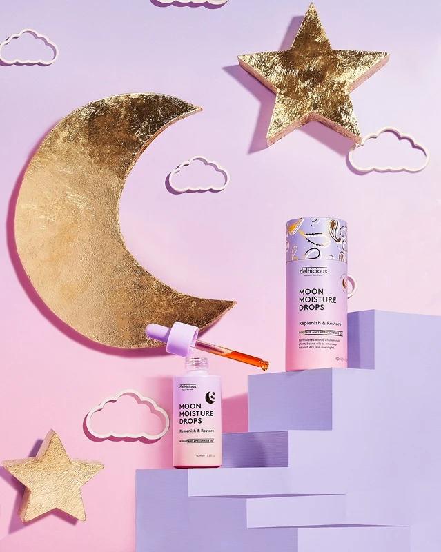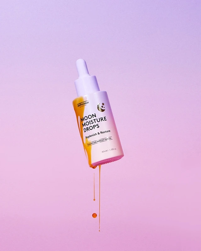 L’huile visage delhicious MOON MOISTURE DROPS est un soin idéal pour votre visage et votre corps.