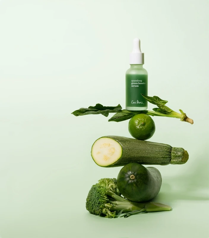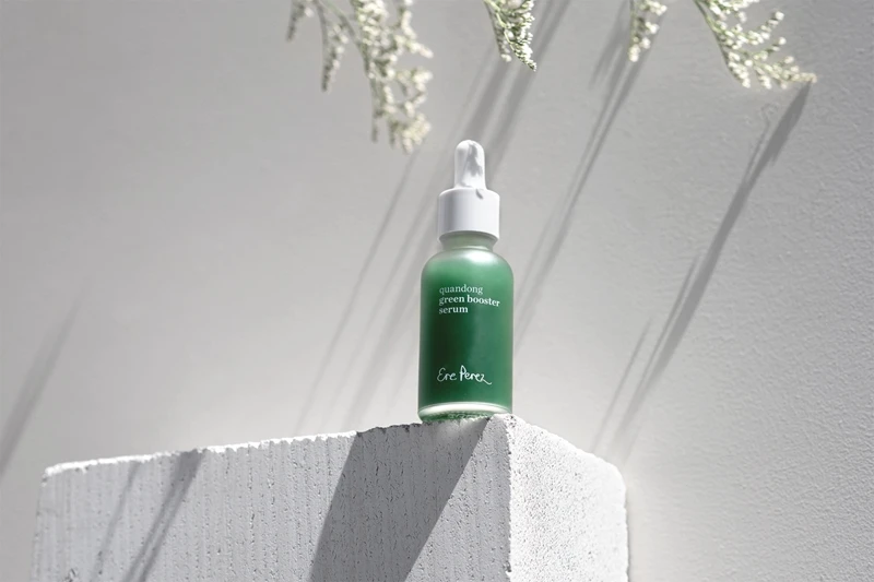 Le sérum facial Ere Perez Quandong Green Booster Serum est un produit à teneur élevée en substances actives. Il constitue donc un soin de luxe pour votre visage.