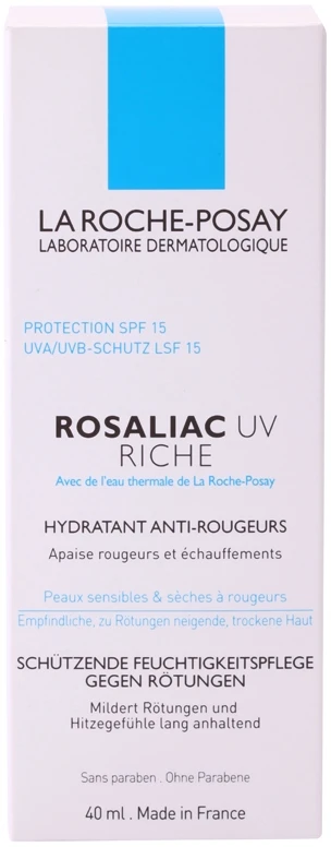 Si vous souffrez d’une peau extrêmement sensible, vous savez combien cela peut souvent être désagréable. La crème nourrissante et apaisante pour les peaux ayant tendance à rougir La Roche-Posay Rosaliac UV Riche avec SPF 15 hydrate efficacement la peau, lui redonne du confort et la protège contre les rayons du soleil. Offrez à la peau tout ce dont elle a besoin.