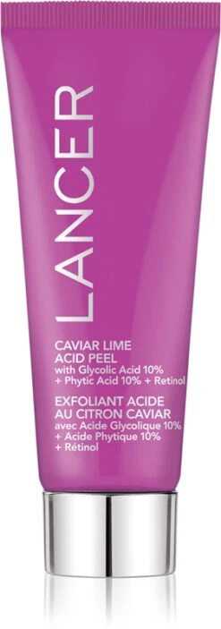 Le gel gommant LANCER Caviar Lime Acid Peel nettoie le visage en profondeur, élimine toutes les impuretés et lisse la peau.