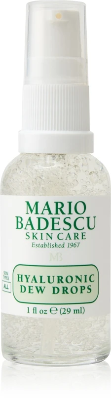 Le sérum facial Mario Badescu Hyaluronic Dew Drops est un produit à teneur élevée en substances actives. Il constitue donc un soin de luxe pour votre visage.
