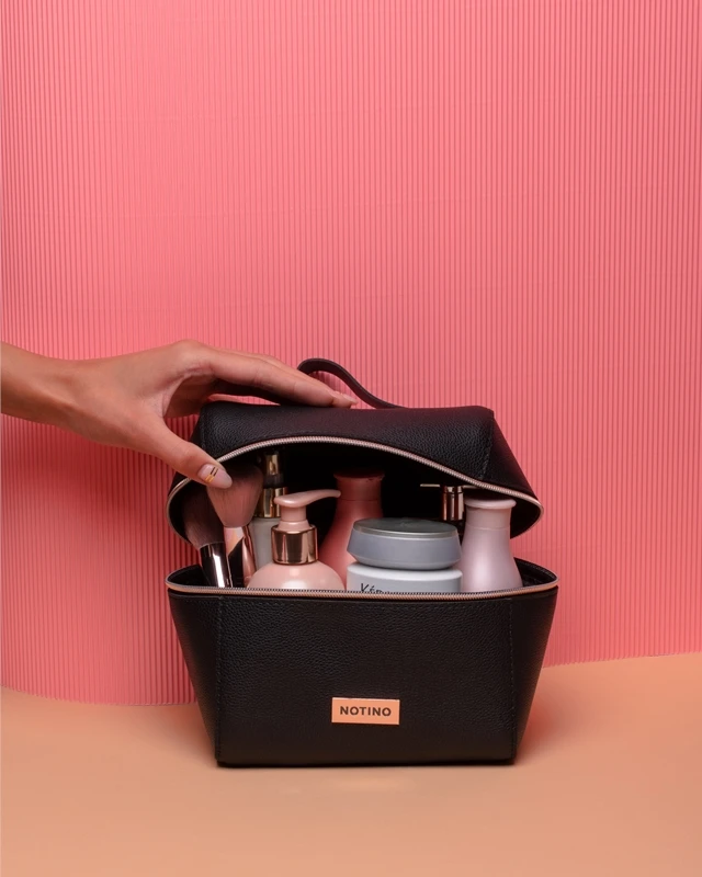 Toutes les amoureuses de maquillage auront un véritable coup de foudre pour l’élégante trousse de maquillage noire Notino Luxe Collection. Ce magnifique contenant très sophistiqué vous permettra de transporter tous vos accessoires beauté, même ceux un peu plus encombrants, comme votre shampoing ou votre gel douche.