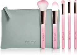 Le fond de teint, le fard et le rouge à lèvres peuvent être appliqués à l’aide des doigts, mais pourquoi ne pas se faciliter la tâche avec le kit de pinceaux et trousse Notino Pastel Collection ? Sa trousse vert pastel contient les 5 pinceaux nécessaires à un maquillage parfait et élégant, sans doigts salis.