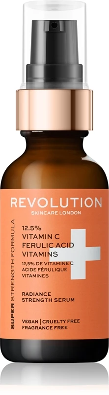 Vous cherchez à obtenir une peau plus éclatante ? Le sérum antioxydant Vitamin C 12,5 % + Ferulic Acid Vitamins de Revolution Skincare contient non seulement de la vitamine C, à un niveau de concentration sans précédent, mais aussi de l’acide férulique qui éclaircit instantanément les teints fatigués et ternes. Il lisse également le grain de la peau, réduit la visibilité des taches pigmentaires et protège des dommages causés par les radicaux libres.