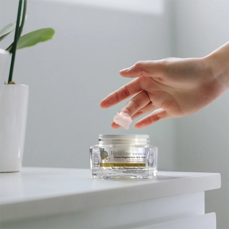Les peaux matures très sèches et affaiblies ont besoin d’être régénérées en profondeur. La crème régénérante avec effet anti-rides Rexaline Premium Line-Killer X-Treme Renovator Rich laisse la peau lumineuse et rajeunie. La combinaison d’acide hyaluronique du complexe Rexaline est enrichie en lipopeptides qui ciblent les rides en profondeur. Améliorez la qualité de votre peau tout en profitant de son parfum subtil.
