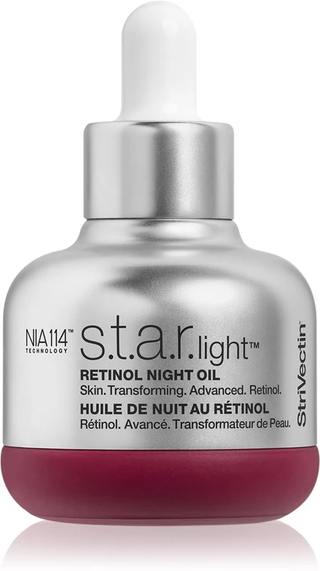 Lancez-vous dans la lutte contre le vieillissement de la peau à l’aide du rétinol. L’huile visage StriVectin S.t.a.r.light™ Retinol Night Oil hydrate et apaise la peau tout en réduisant visiblement les petites ridules et les rides, pour un aspect globalement rajeuni du visage.